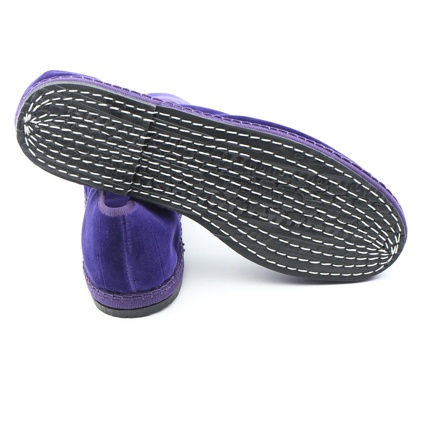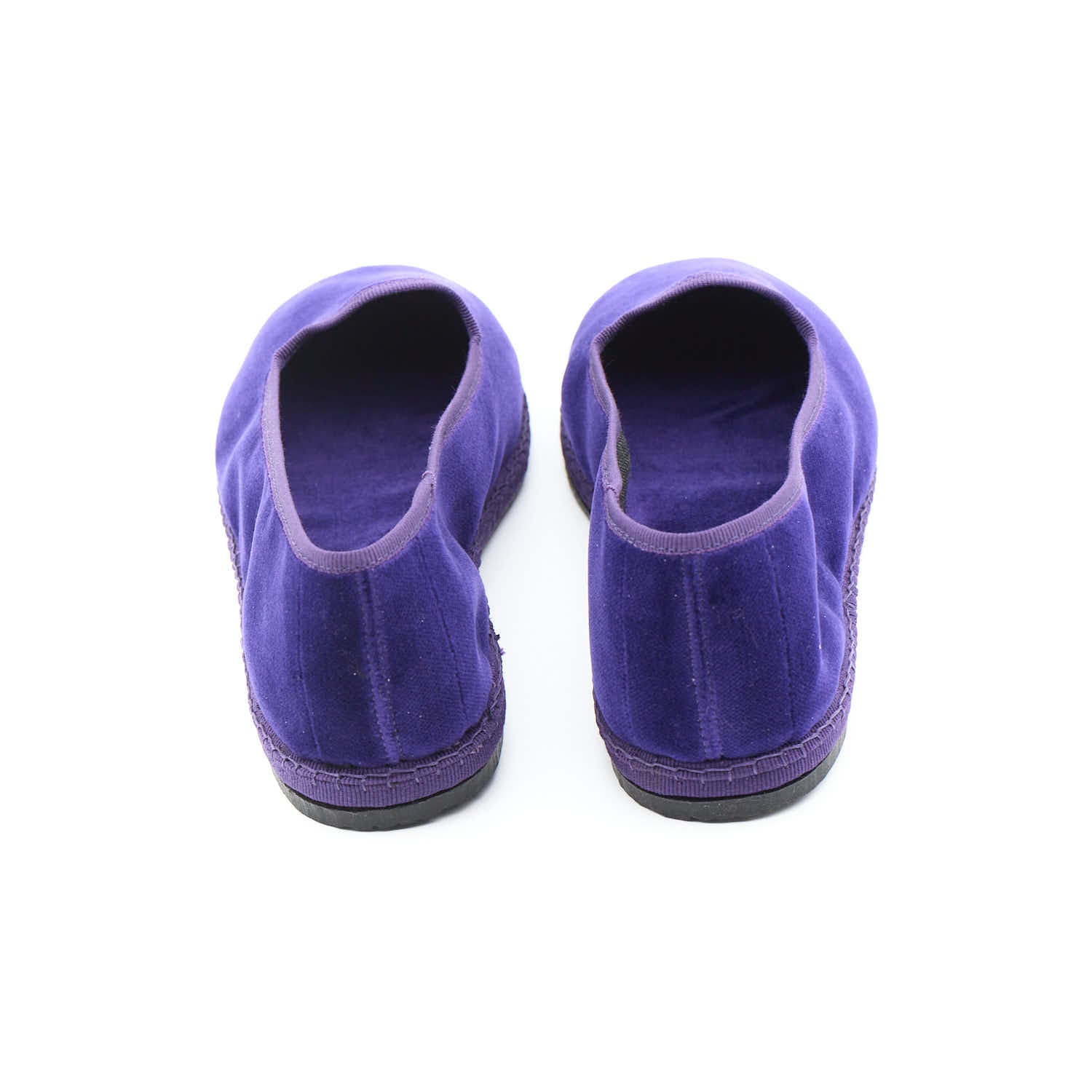 Materialien: Baumwollsamt und handgenähte Fahrradreifensohle.