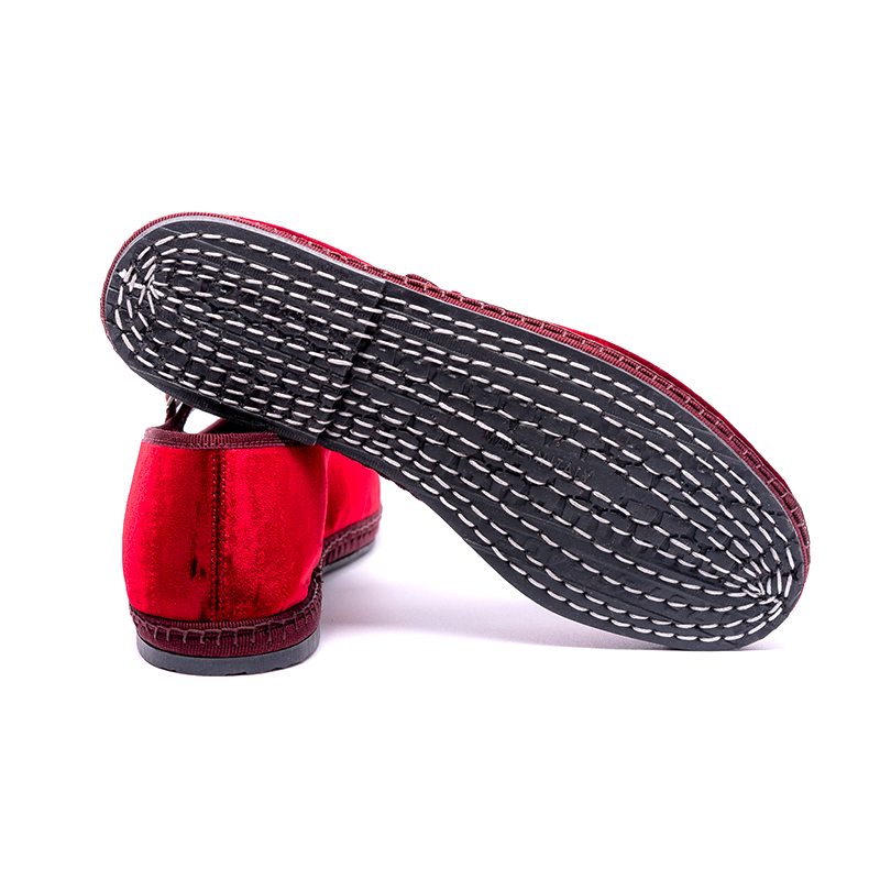 Materialien: Baumwollsamt und handgenähte Fahrradreifensohle