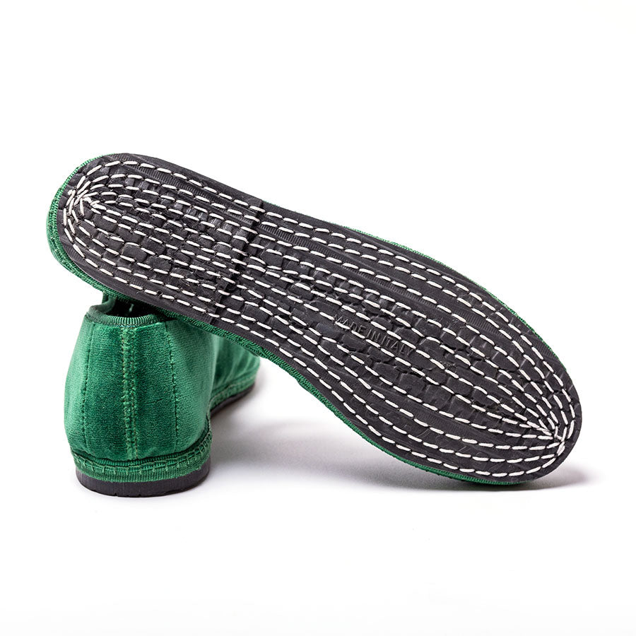 • Matières : Velours de coton; doublure coton et semelle en pneu de bicyclette cousue à la main.