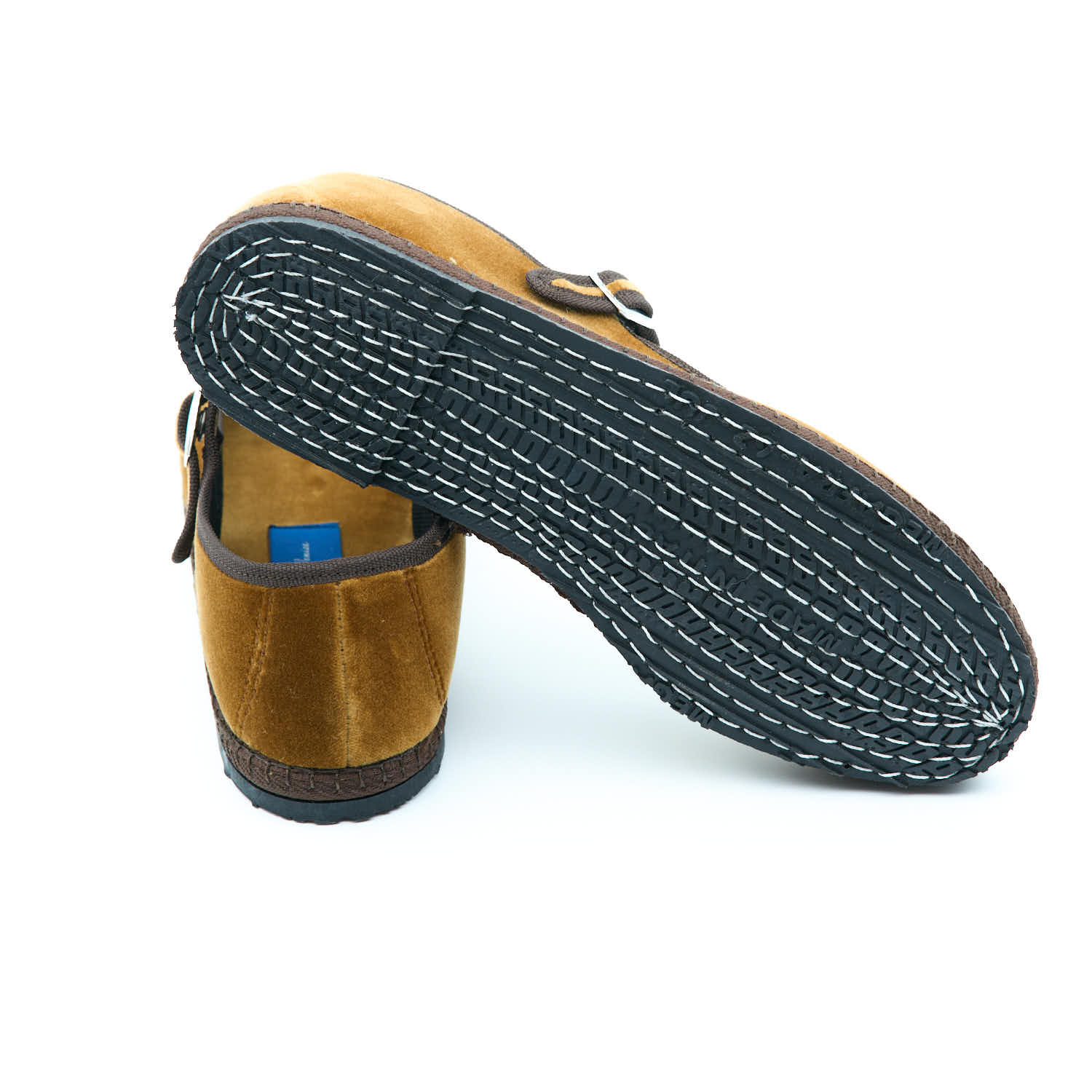 • Materials: Cotton velvet and hand-sewn bicycle tire sole