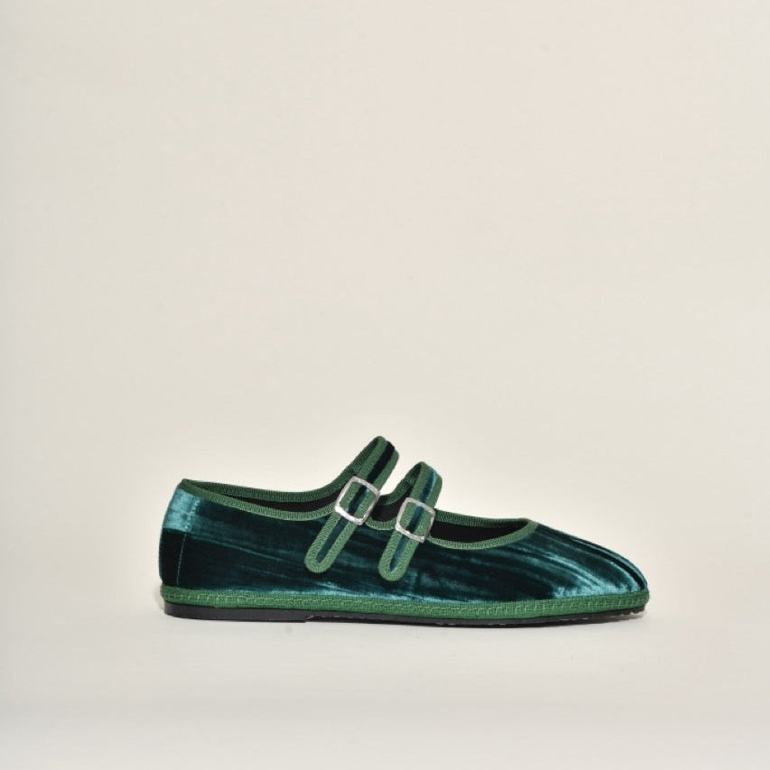 Mary Jane Double Boucle I Velours Froissé Vert Emeraude