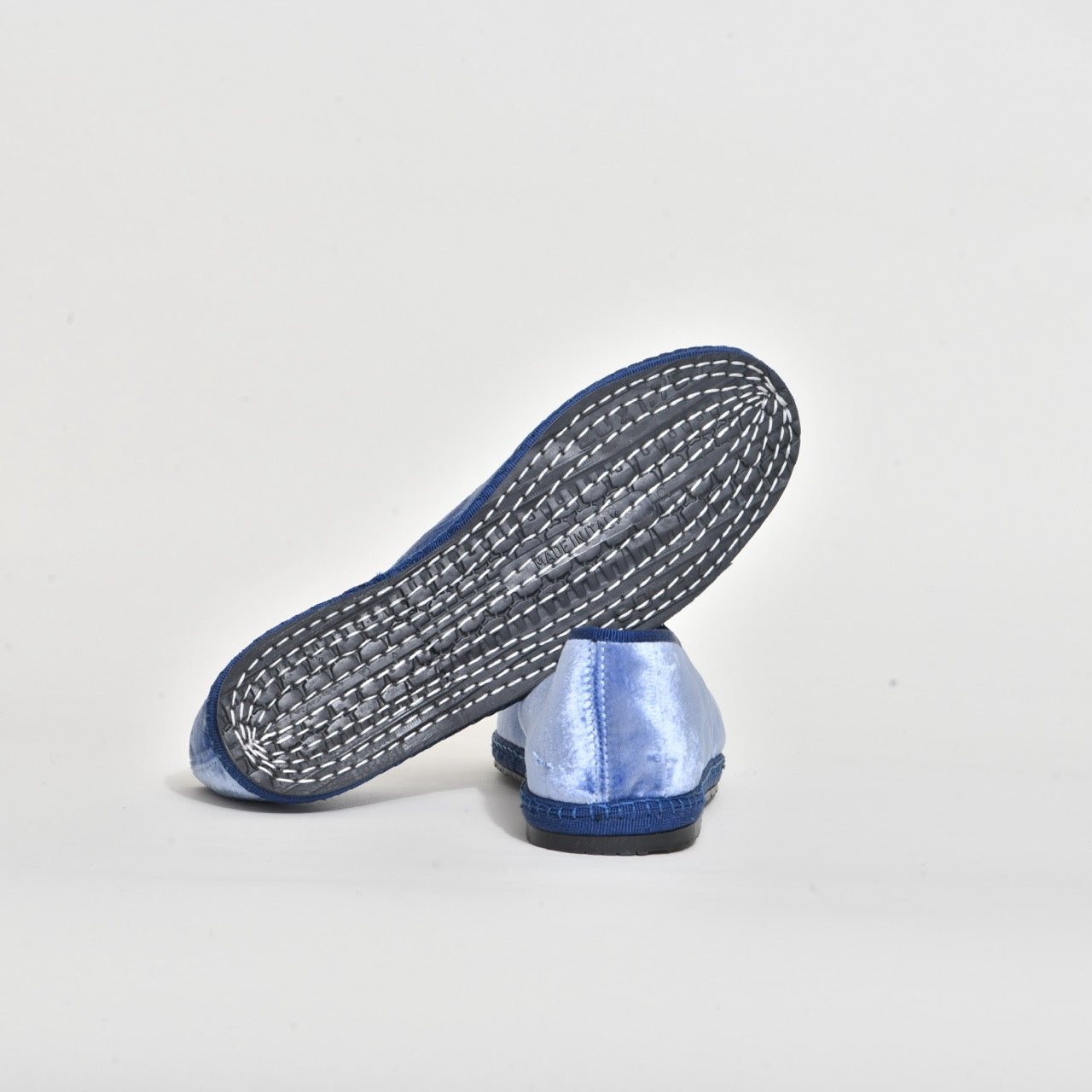 • Matières : Velours soie mélangée, doublure velours;  semelle en pneu de bicyclette cousue à la main.