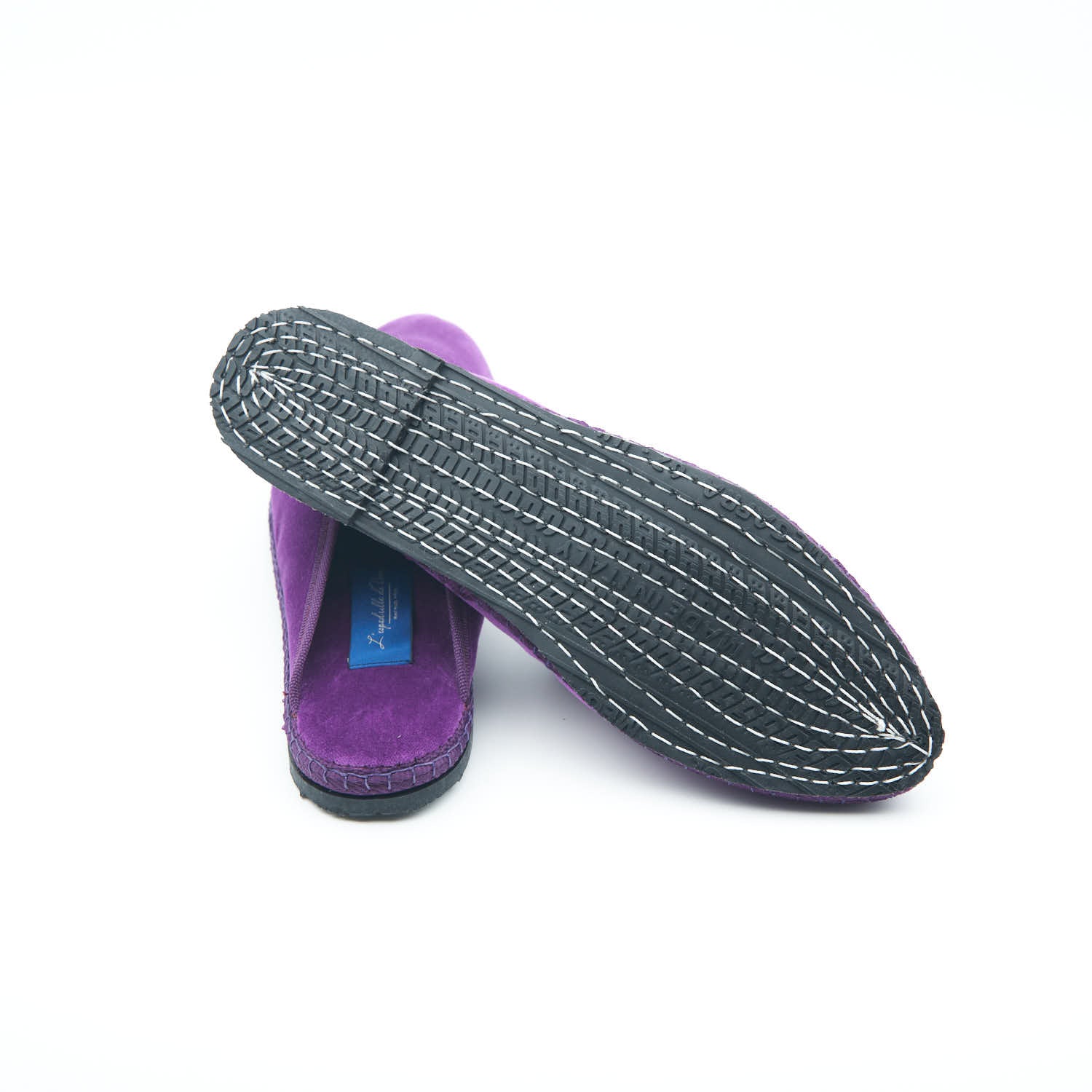 Matières : Velours de coton intérieur - extérieur et semelle en pneu de bicyclette cousue à la main.