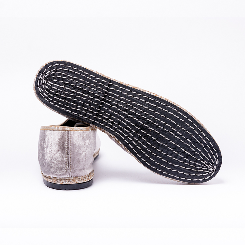 Matières: Velours 12% soie, 88% viscose; doublure similaire semelle eten pneu de bicyclette cousue à la main.