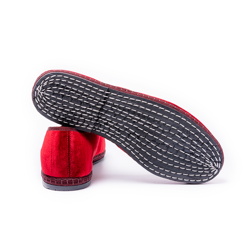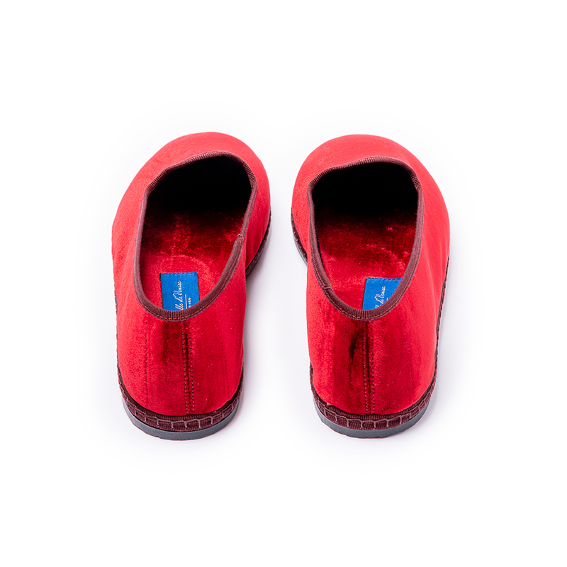 Matières : Velours soie 12%, 88% viscose doublé; semelle en pneu de bicyclette cousue à la main.